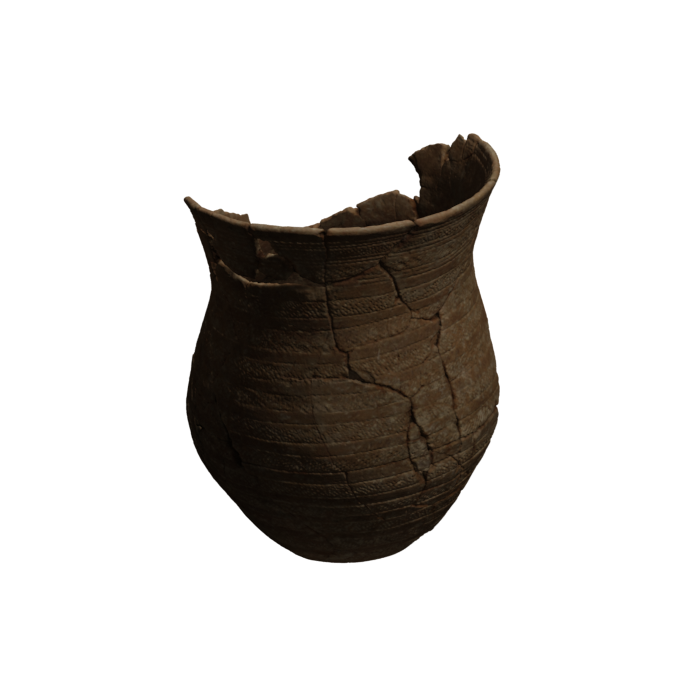 Ce gobelet en forme de cloche, qui caractérise la culture campaniforme, présente un décor de bandes pointillées horizontales parallèles et étroites, réalisées au peigne.